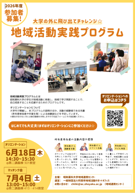 \大学の外に飛び出てチャレンジ☆/昭和薬科大学地域活動実践プログラムに参加しませんか?
