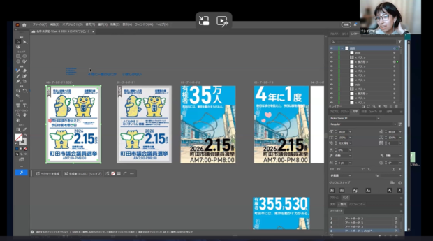サポートオフィスでは、町田市選挙管理委員会事務局から依頼を受け、2026年2月15日投開票の町田市議会議員・町田市長選挙に向けた選挙啓発ポスターを制作しました。 制作にあたっては、大学生5名と20代のデザイナー1名が参加。共に選挙について学びながら本音で意見交換を行い、若者が選挙に関心を持ち、投票に行こうと思えるようなポスターデザインを2回のオンライン会議を通じて検討しました。
